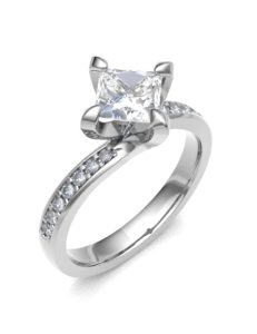 A luxurious twist, a 4 claw setting that boasts an impressive princess cut and a lavish diamond side set – this gorgeous ring is the perfection expression of you love and intentions. Available in Platinum, as well as Yellow, Rose and White Gold in all karats. Please contact us to tailor this product.