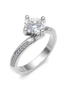 With a beautifully ‘twisted’ band and a selection of luxury hand-picked stones set down the side, this 4 prong ring oozes style and will make you instantly fall in love! Available in Platinum, as well as Yellow, Rose and White Gold in all karats. Please contact us to tailor this product.